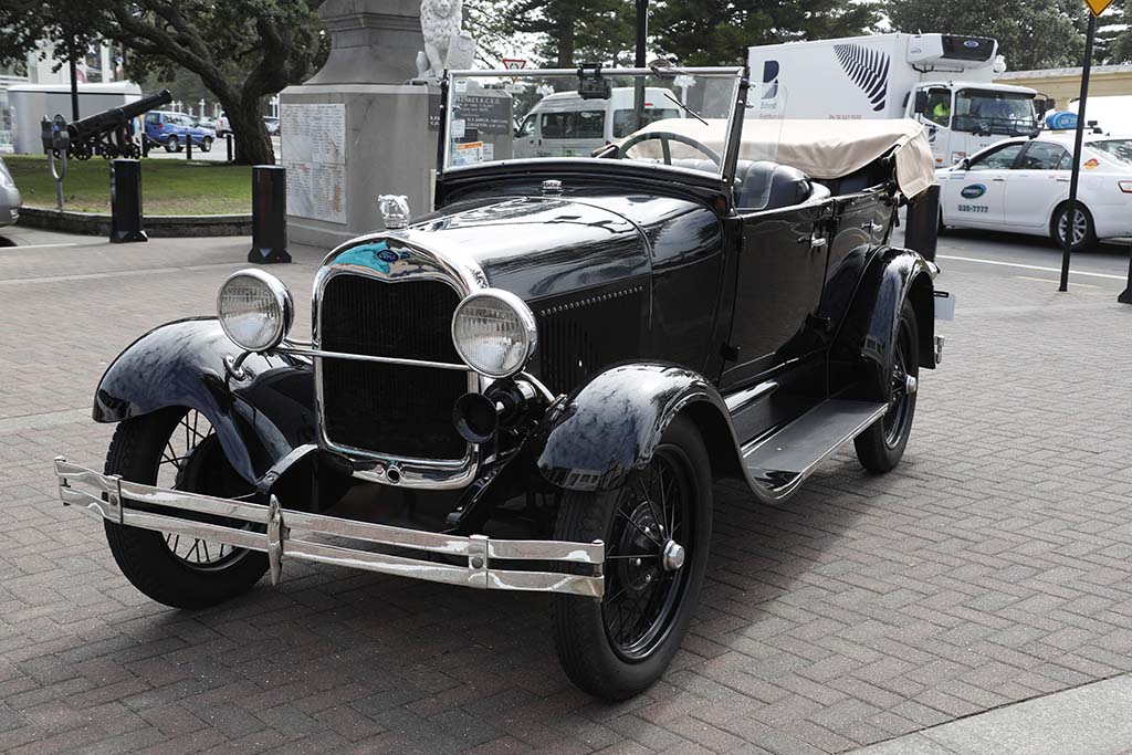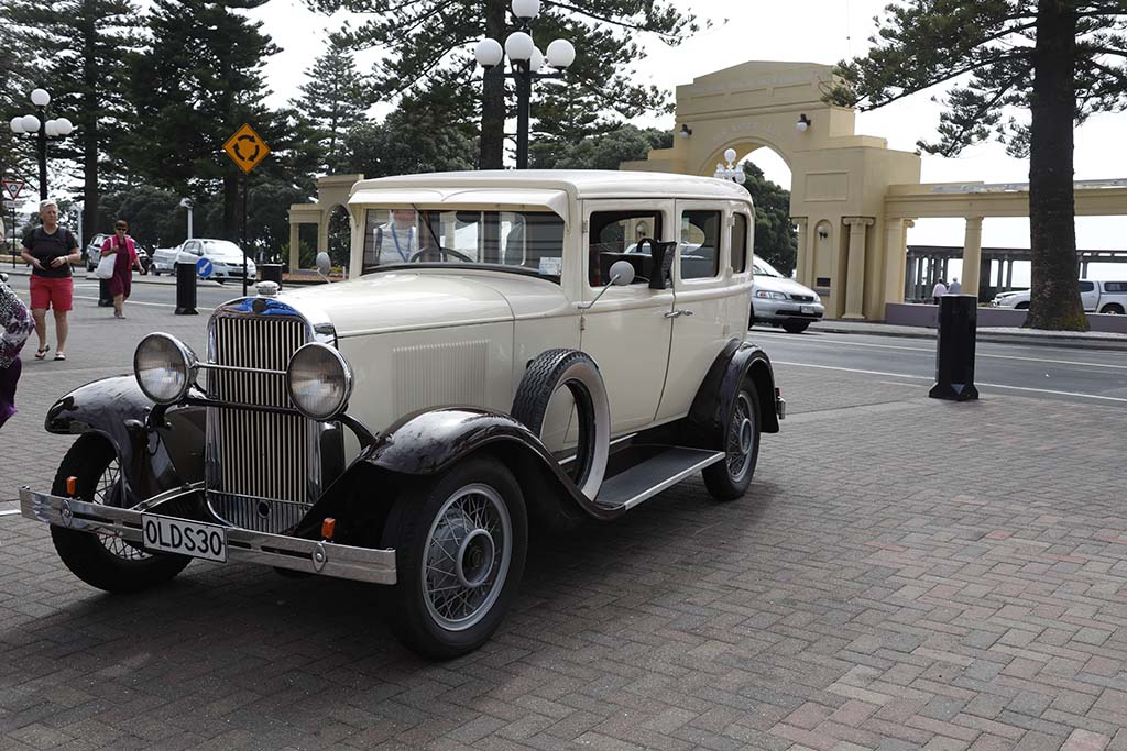 Nachdem ich mich kurz von Carola und Bernhard verabschiedet hatte, sie waren ja quasi meine Nachbarn, und verrichteter Morgentoilette fuhr ich vom Campingplatz bei bewölktem Himmel nach Napier das gut 20km von Clifton weg liegt. Ich fand dort problemlos einen billigen Parkplatz für 2 Stunden, ging in dieser Zeit durch die Stadt Napier. Die Stadt wurde am 3. Februar 1931 durch ein schweres Erdbeben und einem daraus folgenden Großbrand völlig zerstört, anschließend im Art deco Stil neu aufgebaut. Im Zentrum gab es unzählige Shops und nette Cafes im Art Deco Stil, es standen und fuhren auch unzählige schöne, sehr gepflegte Oldtimer herum. Schon die Tage zuvor waren mir während meiner Fahrt durch das Land immer wieder solche Oldtimer entgegen gekommen, oft saßen Fahrer und Beifahrer(in) in Retro-Sachen darin.