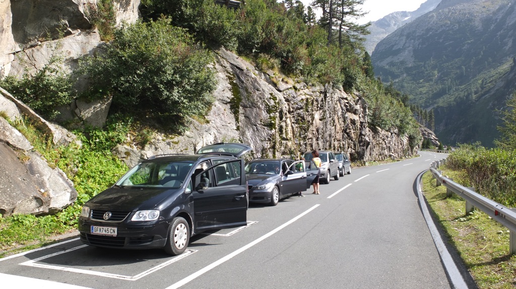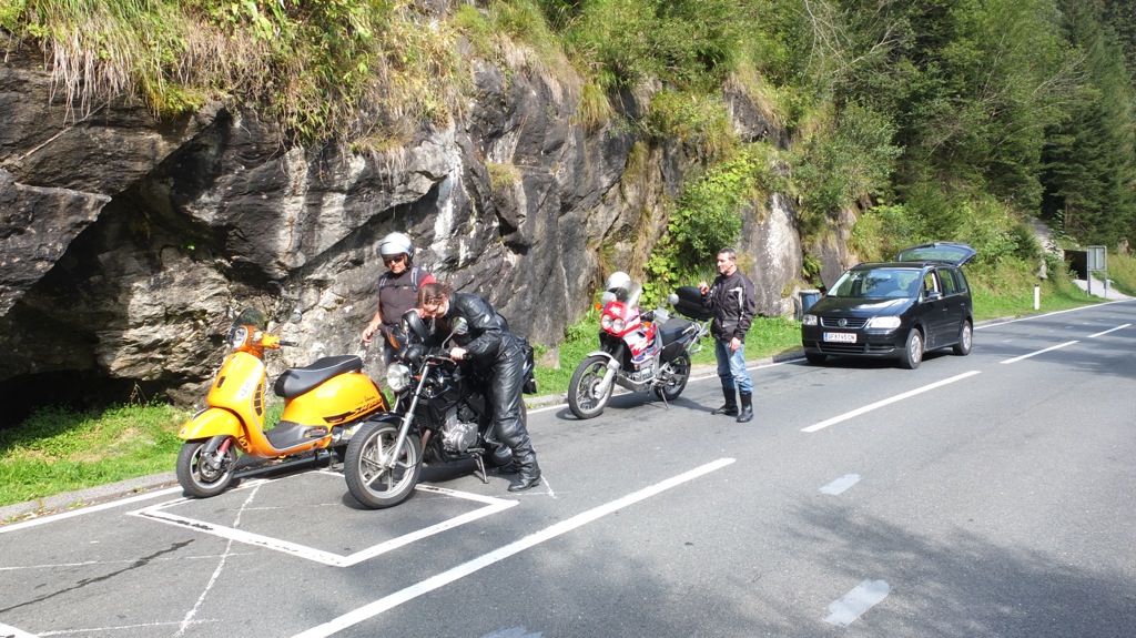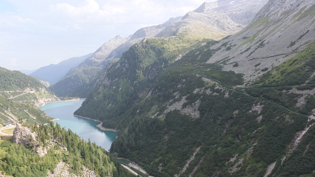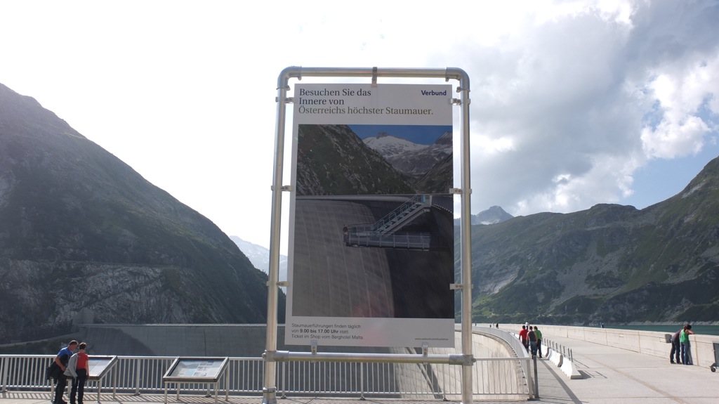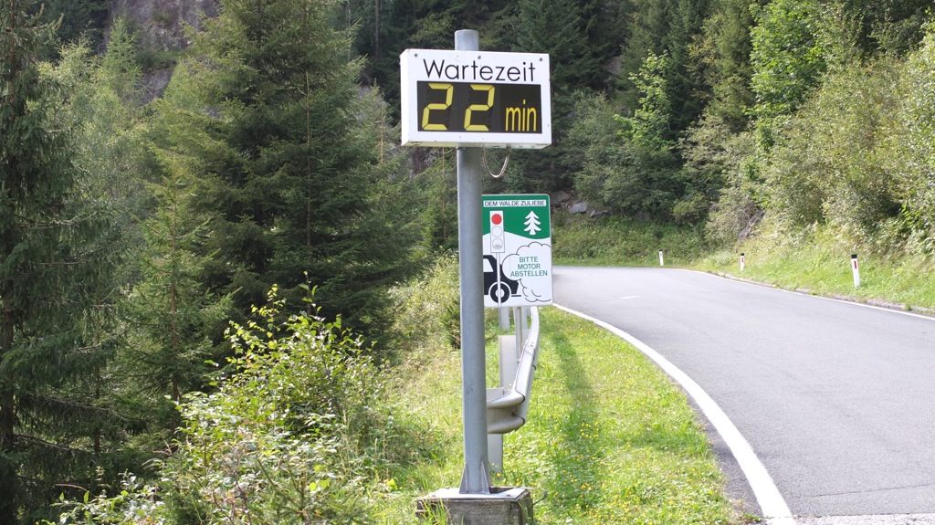 Ich fuhr dann wie geplant zur Malta Hochalpenstrasse weiter, bog dort vor der Hütte der Mautstation links zu einem Café/Restaurant ab weil ich lange Zähne nach einer guten Tasse Kaffee hatte. Auf einer Tafel hatten sie hausgemachten Topfenstrudel mit Schlag und Waldbeeren angepriesen und den gönnte ich mir auch dazu. Es war dann schon 16:00 als ich mich auf den Weg die Mautstrasse hoch machte wobei sie für die etwa 6km lange Strasse 17,50€ verlangten was in keiner Relation zur Maut auf der Nockalmstrasse stand die doch wesentlich länger, und wie sich später rausstellte, wesentlich reizvoller war. Zwei Abschnitte der Strasse sind nur einspurig befahrbar und durch Ampeln geregelt wo auch die ungefähre Wartezeit angeschrieben stand und als ich zur ersten kam, dort 22 Minuten angeschrieben war konnte ich das kaum glauben. Vor mir waren 3 Motorradfahrer aus der Steiermark die rumblödelten und u.a. auf der Induktionsschleife rumhüpften worauf die Anzeige doch tatsächlich gleich mehrere Minuten weitersprang 🙂