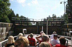 Mit dem Ausflugsboot in einer Schleuse