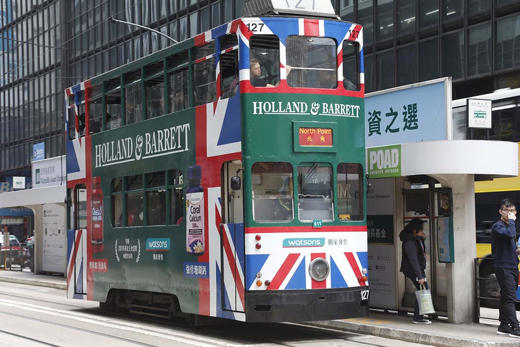 Ich ging dann durch die Strassen von Central, hier war teilweise sehr viel Verkehr, es verkehrten auch die bekannten Doppeldecker-Trams in verschiedensten Aufmachungen. Ich suchte dann das Hardrock Cafe, hatte mir die Adresse in der Früh am Notebook rausgesucht, im Plan meines Reiseführers mit einem Punkt ungefähr markiert denn normalerweise springt einem so ein Hardrock Cafe eh ins Auge, nicht so aber hier. Dummerweise hatte ich mir die genaue Adresse nicht notiert, ins Internet kam ich mit meinem Smartphone nicht, ich fragte in zwei Geschäften nach dem Weg, die wußten nicht wovon ich spreche. Erst ein Security-Mann auf der Strasse kannte es, konnte mir ungefähr sagen wo ich es finde aber dennoch gelang es mir nicht es zu finden. Erst als ich bei einem McDonalds-Lokal draußen das gratis WLAN anzapfte konnte ich die Adresse nachschauen, war nicht so weit weg aber ohne diese Info hätte ich es nie gefunden weil es doch etwas versteckt in einer Gasse lag.